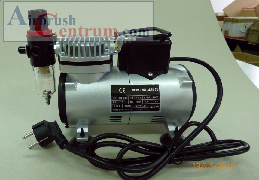 Pístový bezolejový kompresor s plynulou regulací tlaku vzduchu, bez tlakové nádoby, plně automatický provoz. Výkon 23 l/min. Výstup je vnější závit 1/8". Hlasitost 47 dB. Motor má ventilátor pro lepší chlazení.